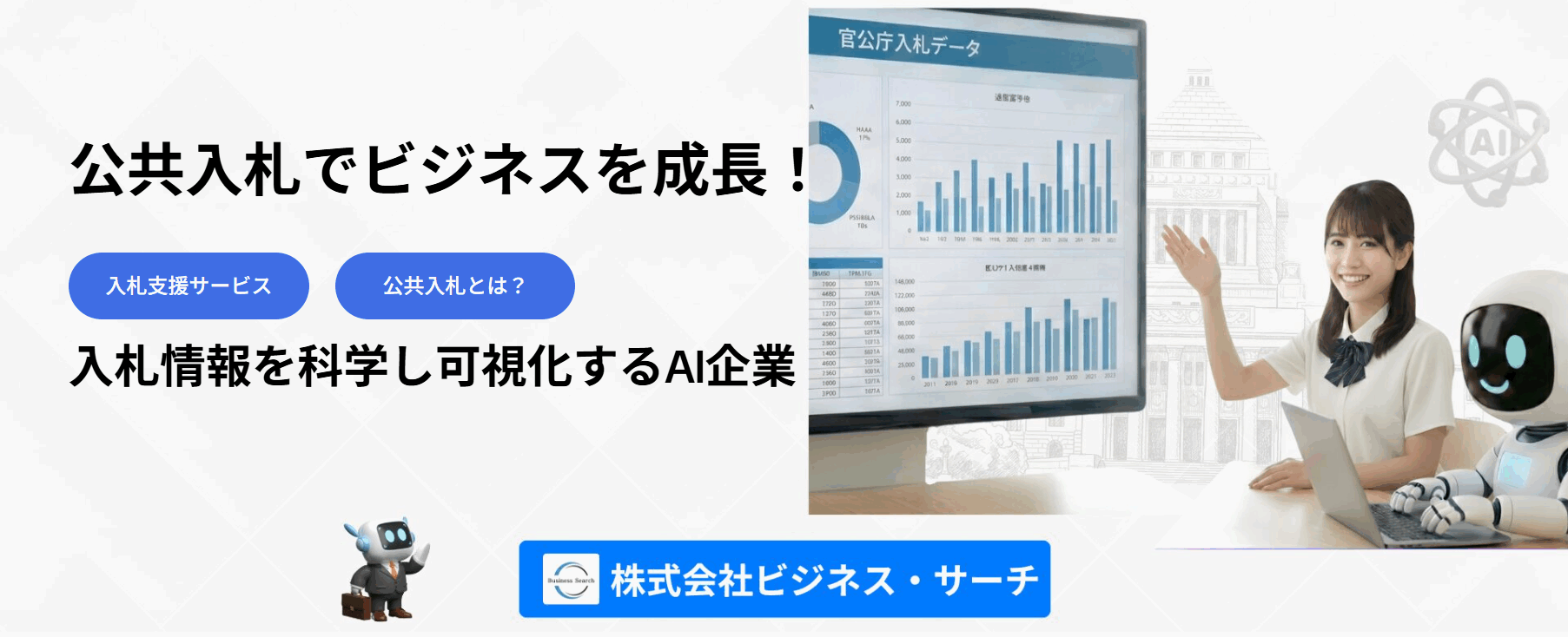全国の入札情報を自動的に収集して検索できるサービスです。